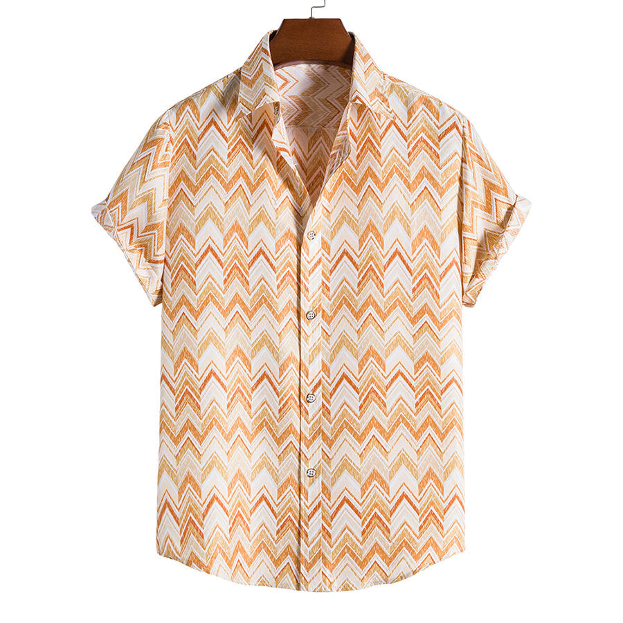 This men's shirt stands out with its stylish pattern and vibrant, uplifting colours. The lightweight fabric ensures excellent comfort and a flattering fit—perfect for summer days or bringing fresh energy to your look all year round. A must-have for those who love to express personality through style.